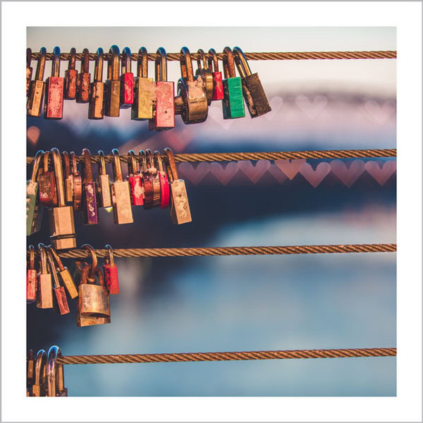 Bestell-Nr.: 1411 Treueschlösser an der Kettenbrücke in Bamberg Fotograf: Thomas Paal Format: 160x160mm quadratisch Material (Karte): 240 g/m² beige Naturpapier inkl. hochwertiger Umschlag (170×170 mm)